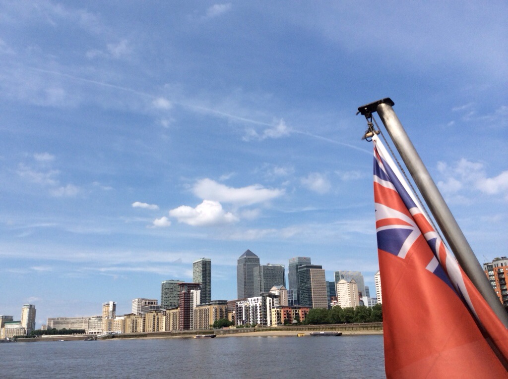 Прогулка по Лондону начинается. Купили билеты на кораблик “Clipper” возле причала Embankment и ждем его на пристани. Кстати, если оплачивать с помощью проездного Oyster card, то будет скидка. В направлении Гринвича клипперы уходят каждые 20 минут. Движется он быстро; до пункта назначения – минут 40, а значит есть время попить кофе, поглазеть вокруг, поймать брызги в самый неожиданный момент и, конечно же, пофотографировать.