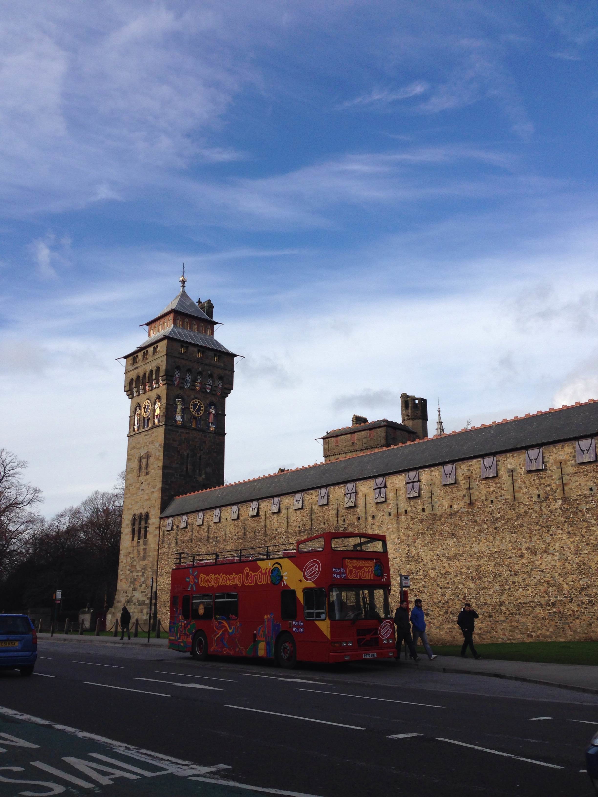 Кардифф. Повсюду велосипеды. Автобусы “Capital transport for our capital city” предельно дружественной окраски – оранжевые с зеленым . В центре города – старинный замок, датированный XI веком. Тут же при входе расположен небольшой магазинчик с сувенирами и кафе. Пить утренний кофе с видом на главную крепость Уэльса обязательно. Замок работает до 17.00.